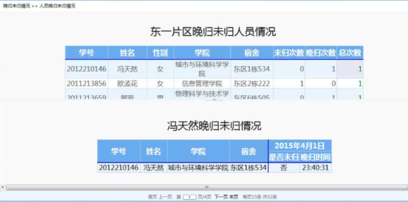 指定兩天內沒有門禁刷卡信息和一卡通消費信息以及上網信息的學生為不在校學生,擬出并做預警。