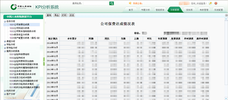 提供總體分析,渠道分析,車險(xiǎn)分析,非車險(xiǎn)分析,通用分析,機(jī)構(gòu)分析,客戶分析等數(shù)據(jù)分析服務(wù)。對保費(fèi)、利潤、成本、預(yù)算、收益等指標(biāo)進(jìn)行匯總統(tǒng)計(jì)。通過BI數(shù)據(jù)服務(wù)平臺(tái)完成以上統(tǒng)計(jì)分析報(bào)表的設(shè)計(jì)與制作,并將這些報(bào)表集成到中國人壽財(cái)險(xiǎn)的業(yè)務(wù)平臺(tái),在中國人壽財(cái)險(xiǎn)業(yè)務(wù)平臺(tái)統(tǒng)一展現(xiàn)。