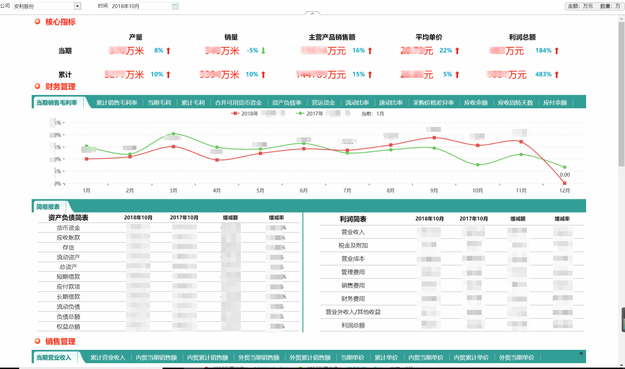 通過分析、預警、預測等指標的提煉,提高了集團的管理水平,一頁知全貌,管理者所需數(shù)據(jù)可以及時了解,及時掌握