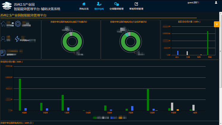 按照建筑樓宇分項計量要求,對2.5園區(qū)內(nèi)19棟樓分別用電量進行統(tǒng)計,看出那種類型用能是耗能大戶,從而進行控制。有每棟樓的平均值統(tǒng)計,標(biāo)桿值統(tǒng)計,通過分析比對查找問題。
