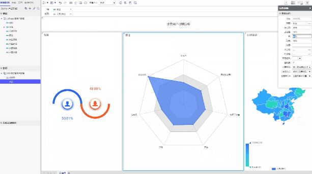 支持靈活的自由式布局、組件化的統(tǒng)計(jì)圖、豐富的數(shù)據(jù)統(tǒng)計(jì)函數(shù)、靈活的篩選功能、智能的圖表聯(lián)動,用戶只需通過簡單的拖拉拽,就可以快速地制作出一張