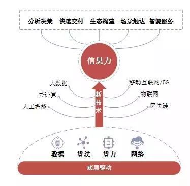 實際上,數據、算法、算力、網絡是對業務進行重塑的信息力的原始動力,也是推動企業向數字化、網絡化、智能化的方向演進的原始動力。