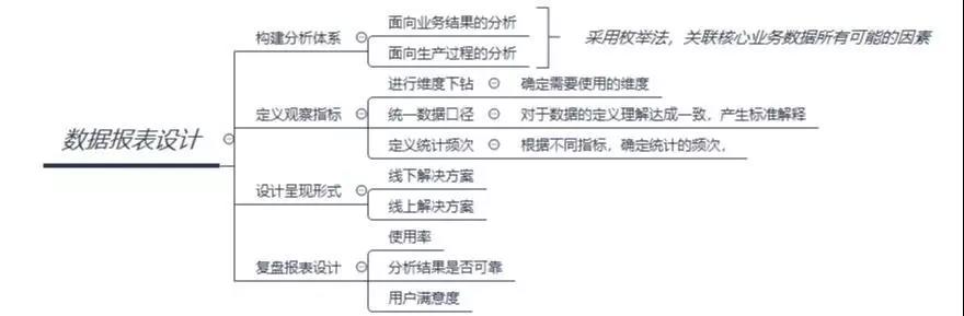 維度細(xì)化的過程中,可能會(huì)逐漸拆分為一級(jí)指標(biāo)、二級(jí)指標(biāo)……n級(jí)指標(biāo),但并非拆分中的每一個(gè)維度都要作為觀察指標(biāo)。是否作為報(bào)表使用要結(jié)合公司業(yè)務(wù)特點(diǎn)并且和業(yè)務(wù)部門多次溝通協(xié)調(diào)達(dá)成共識(shí)。